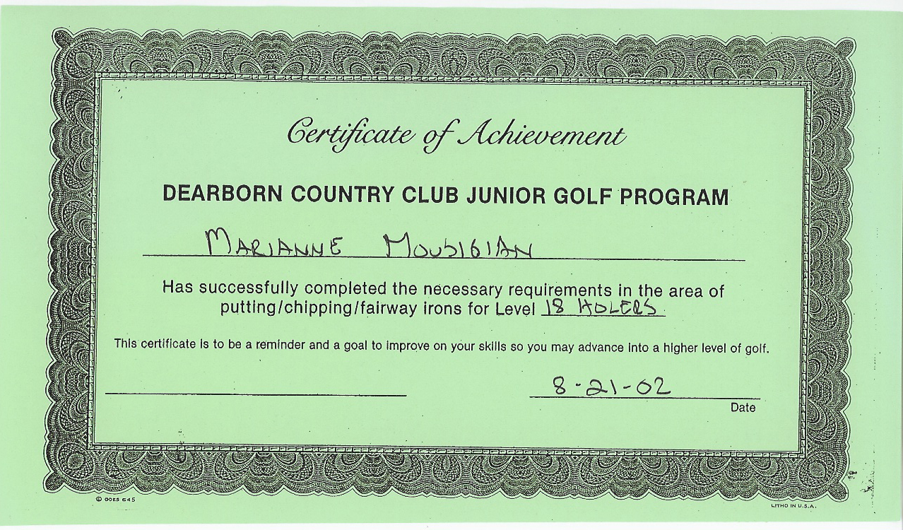 I have participated in the Dearborn Country Club (DCC) Junior Golf Program for over eight years. It has been one of the activities I have done to stay busy during the summer. I have continued to improve both the mental and physical aspects of my game. Throughout the years I have accumulated many medals for the weekly competitions and have also won several championships. Golf has become a sport I truly enjoy because it is primarily an individual sport. I am always motivated to strive for my personal best. My participation in this program led me to join the golf team for my high school.