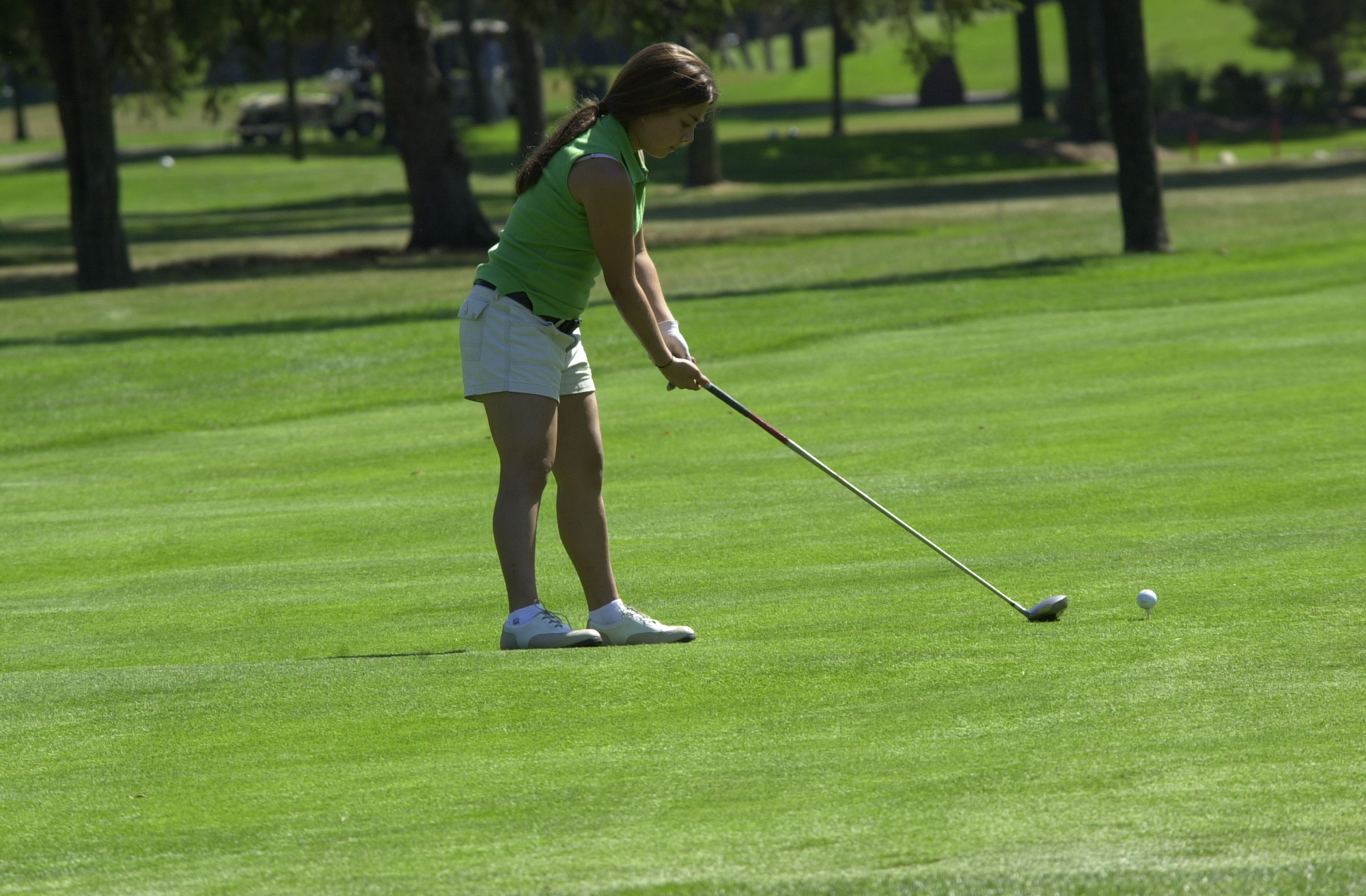 This is a picture of me golfing. In this picture, I was carefully getting ready to take a practice swing and was concentrating on how I wanted going to hit the ball. I always became this focused before actually addressing the ball. Going through these procedures every time I've played has helped me become a much better golfer, especially when considering the mental aspect of the game.