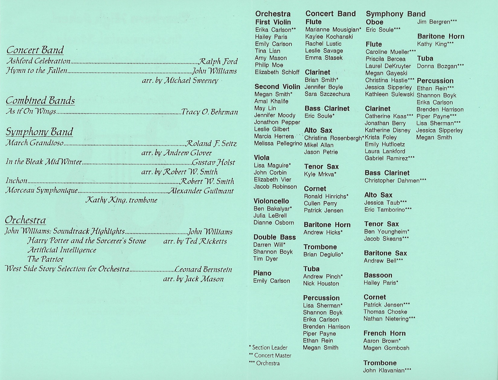 During my freshman year, I was the flute section leader of the Concert Band. This leadership position allowed me to help the other members of my section and to establish a sense of unity among all of the flutists.